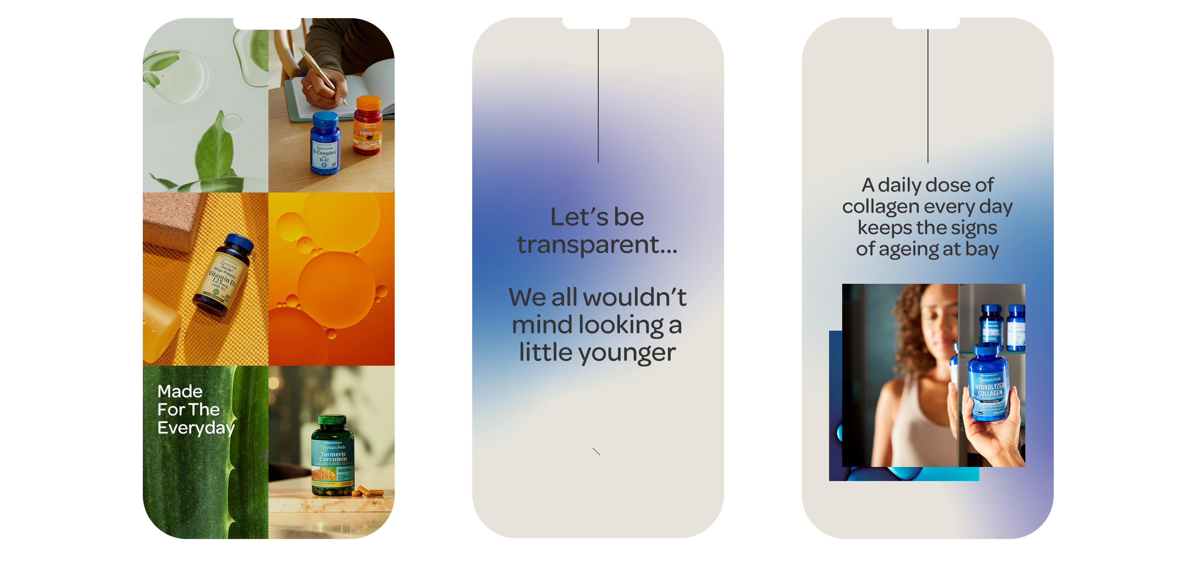 High quality, pure ingredients and designed for the everyday - These values are very important within the brand world of Puritan's Pride, and so we wanted this messaging to be at the forefront of all the creative.
